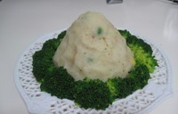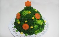 - 然后把西蓝花沿着土豆塔四周,依次从下自上垒起,直到把土豆泥包裹在里面,成为一棵顶天立地的大树