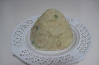- 把土豆泥堆成塔形,放到盘(好看的盘)中