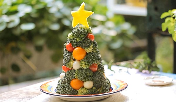 - 好了,谢谢你这么有耐心看到这里,最后一步当然是最有趣的,你可以用你灵巧的手把玉米粒啊,青豆啊,胡萝卜啊凹好造型,点缀在圣诞树上,HAVE FUN!