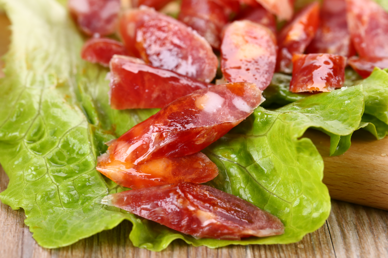 热量:584千卡/每百克,100g腊肠≈7.7个鸡蛋的热量